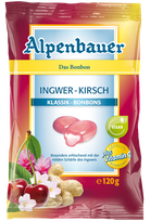 ALPENBAUER BIO Ingwer-Kirsch, su imbiero ekstraktu ir vyšniomis saldainiai, 120 g
