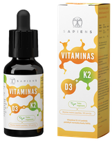 SAPIENS Vitaminas D3 + K2 skystis, 30 ml