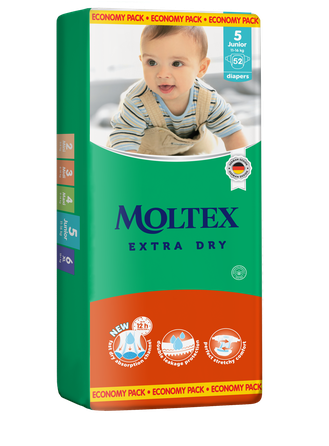 "Moltex Extra Dry" 5 JUNIOR yra specialiai sukurti kūdikiams, sveriantiems nuo 11 iki 16 kg.