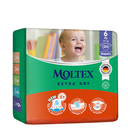 "Moltex Extra Dry" 6 XL yra specialiai sukurti kūdikiams, sveriantiems 15+kg.