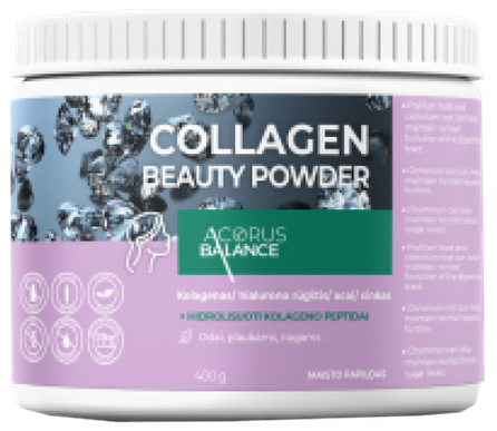 Collagen Beauty Powder – maisto papildas, kurio sudėtyje yra hidrolizuoto kolageno, vitamino C, cinko, hialurono rūgšties ir kitų veikliųjų medžiagų, padedančių išlaikyti odos elastingumą ir plaukų bei nagų sveikatą.
