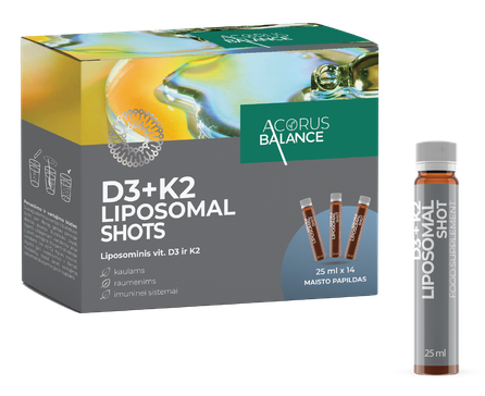 Stiprios koncentracijos ir dar geriau pasisavinamas skystas liposominis vitaminas D3 su vitaminu K2 imuninei sistemai, raumenims ir kaulams.