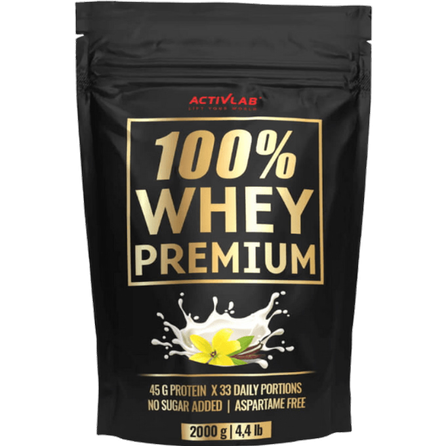 Activlab 100% Whey Premium 2000g. Baltyminiai milteliai kokteiliui ruošti, su saldikliais. Grynasis kiekis: 2000 g (65 porcijos). Maistinė vertė: 100 g 60 g (dviejose porcijose) 30 g (vienoje porcijoje) Energinė vertė 1704kJ/403kcal 1023kJ/242kcal 511kJ/121kcal RIebalai 7,1g 4,3g 2,1g Iš kurių sočiųjų 4,6g 2,8g 1,4g Angliavandeniai 9,8g 5,9g 2,9g Iš kurių cukraus 4,3g 2,6g 1,3g Baltymai 75g 45g 23g Druska 0,41g 0,25g 0,12g Sudedamosios dalys: išrūgų baltymų koncentratas (iš pieno) 98%, kakava 1% (šokolado skonio), tirpi kava 1% (kavos skonio), kvapiosios medžiagos, vanilės milteliai 0,1% (vanilės skonio), braškių sultys 0,1% (braškių skonis), džiovintų bananų tyrė 0,1% (bananų skonio), rūgštingumą reguliuojanti medžiaga - citrinų rūgštis (skoniai: ananasų, braškių, persikų ir uogų), dažikliai: karminas* (skoniai: braškių ir mėlynių), saulėlydžio geltonasis FCF* (persikų skonio), karotinai (ananasų skonio), amoniako-sulfito karamelė (skoniai: sausainių, šokolado ir kavos skonio), Briliantinis mėlynasis FCF (uogų skonio), tirštiklis - ksantano derva, saldikliai: sukralozė ir acesulfamas K. *Saulėlydžio geltonasis FCF ir karminas gali neigiamai paveikti vaikų aktyvumą ir dėmesį. Alergenai: gali būti grūdų, turinčių glitimo, sojos ir pieno darinių. Vartojimas: 30 g (1½ samtelio) ištirpinkite 200 ml vandens. Vartoti du kartus per dieną tarp valgymų. Įspėjimai: nevartoti, jei esate alergiškas bet kuriai iš produkto sudedamųjų dalių. Netinka nėščioms ar krūtimi maitinančioms moterims. Produktas neturi būti vartojamas kaip maisto pakaitalas. Neviršyti nustatytos rekomenduojamos dozės. Laikyti sausoje, vėsioje, vaikams nepasiekiamoje vietoje, saugoti nuo tiesioginių saulės spindulių. Geriausias iki (termino pabaigos): datos nurodytos ant pakuotės. Partija: žr. ant pakuotės. Gamintojas: UNIPRO Sp. z o. o., Targowisko 553, 32-015 Kłaj, Lenkija. Platintojas: Biceps, MB. Kauno g. 30, parduotuvė "MrBiceps", Vilnius. www.MrBiceps.lt. Tel. : +37064621250.