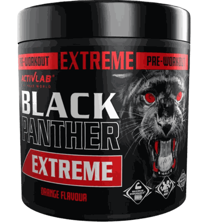 Activlab Black Panther Extreme 300g. Maisto produktas milteliais, su saldikliais, vitaminais ir kofeinu. Sudėtyje yra kofeino (200 mg/20 g). Nerekomenduojama vaikams ir nėščioms moterims. Grynasis kiekis: 300 g (15 porcijų). Maistinė vertė Dienos porcija (20 g) Kreatinas 3000 mg Beta-alaninaas 2400 mg Kofeinas 200 mg Burokėlių šaknų ekstraktas 200 mg Citrulinas 3000 mg Taurinas 1500 mg Kalcio beta-hidroksi-beta-metilbutiratas 1500 mg L-fenilalaninas 750 mg L-tirozinas 500 mg Fosforas 200 mg (28,6 %*) Pantoteno rūgštis 50 mg (833 %*) Vitaminas B6 15 mg (1071 %*) Cinkas 15 mg (150 %*) Natris 600 mg Kalis 300 mg (15 %*) Chloras 120 mg (15 %*) Magnis 60 mg (16 %*) Kalcis 380 mg (47,5 %*) *RMV% - referencinė maistinė vertė Sudedamosios dalys: Orange skonis:Mineralinės medžiagos (natrio citratas, ortofosforo rūgšties kalcio druskos, kalio citratas, citrinos rūgšties magnio druskos, kalio chloridas, cinko diglicinatas), kreatino monohidratas, L-citrulinas, beta-alaninas, beta-hidroksi-beta-metilbutiratas (Ca-HMB), taurinas, rūgštingumą reguliuojanti medžiaga citrinų rūgštis, L-fenilalaninas, L-tirozinas, burokėlių šaknų ekstraktas (Beta vulgaris), kofeinas, kvapiosios medžiagos, vitaminai (kalcio D-pantotenatas, piridoksino hidrochloridas), saldikliai: Acesulfamas K ir sukralozė, dažiklis - karotenai. Multifruit skonis: Mineralinės medžiagos (natrio citratas, ortofosforo rūgšties kalcio druskos, kalio citratas, citrinos rūgšties magnio druskos, kalio chloridas, cinko diglicinatas), kreatino monohidratas, L-citrulinas, beta-alaninas, beta-hidroksi-beta-metilbutiratas (Ca-HMB), taurinas, rūgštingumą reguliuojanti medžiaga citrinų rūgštis, L-fenilalaninas, L-tirozinas, burokėlių šaknų ekstraktas (Beta vulgaris), kofeinas, kvapiosios medžiagos, vitaminai (kalcio D-pantotenatas, piridoksino hidrochloridas), saldikliai: Acesulfamas K ir sukralozė, dažiklis - karotenai. Blackcurrant skonis: mineralai (natrio citratas, ortofosforo rūgšties kalcio druskos, kalio citratas, citrinos rūgšties magnio druskos, kalio chloridas, cinko diglicinatas), kreatino monohidratas, L-citrulinas, beta-alaninas, beta-hidroksi-beta-metilbutiratas (Ca-HMB), taurinas, rūgštingumą reguliuojanti medžiaga citrinų rūgštis, L-fenilalaninas, L-tirozinas, burokėlių šaknų ekstraktas (Beta vulgaris), kofeinas, kvapiosios medžiagos, vitaminai (kalcio D-pantotenatas, piridoksino hidrochloridas), saldikliai: Acesulfamas K ir sukralozė, spirulina. Alergenai: gali būti grūdų glitimo, sojos, pieno pėdsakų. Įspėjimai: Nevartoti, jei esate alergiškas bet kuriai iš produkto sudedamųjų dalių. Netinka nėščioms ar krūtimi maitinančioms moterims. Produktas neturi būti vartojamas kaip maisto pakaitalas. Neviršyti nustatytos rekomenduojamos dozės. Laikyti sausoje, vėsioje, vaikams nepasiekiamoje vietoje, saugoti nuo tiesioginių saulės spindulių. Geriausias iki (termino pabaigos): datos nurodytos ant pakuotės. Partija: žr. ant pakuotės. Gamintojas: UNIPRO Sp. z o. o., Targowisko 553, 32-015 Kłaj, Lenkija. Platintojas: Biceps, MB. Kauno g. 30, parduotuvė "MrBiceps", Vilnius. www.MrBiceps.lt. Tel. : +37064621250.