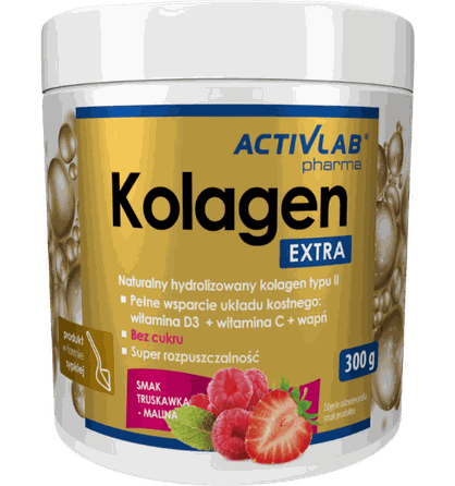 Activlab Collagen Extra 300 g. Kolageno milteliai su vitaminais, mineralais ir saldikliais. Grynasis kiekis: 300 g. Maistinė vertė: 1 porcijoje (15 g) Kolagenas 10 g Vitaminas C 1000 mg (1250%*) Kalcis 120 mg (15%*) Vitaminas D 50 mg (2000TV**) (1000%*) *Referencinė maistinė vertė **TV - tarptautiniai vienetai Sudedamosios dalys: Mango-gervuogių skonio: kolageno hidrolizatas, maltodekstrinas, L-askorbo rūgštis, ortofosforo rūgšties kalcio druskos, kvapiosios medžiagos, rūgštingumą reguliuojanti medžiaga – citrinų rūgštis, saldiklis – sukralozė, cholekalciferolis, dažikliai: karminas, košenilio raudonasis – gali turėti žalingą poveikį vaikų aktyvumui ir dėmesiui. Braškių-aviečių skonio: kolageno hidrolizatas, maltodekstrinas, L-askorbo rūgštis, ortofosforo rūgšties kalcio druskos, kvapiosios medžiagos, rūgštingumą reguliuojanti medžiaga – citrinų rūgštis, saldiklis – sukralozė, cholekalciferolis, dažiklis: košenilio raudonasis – gali neigiamai paveikti vaikų aktyvumą ir dėmesį. Alergenai: gali būti grūdų, kurių sudėtyje yra glitimo, sojos, pieno darinių Įspėjimai: nevartoti, jei esate alergiškas bet kuriai iš produkto sudedamųjų dalių. Netinka nėščioms ar krūtimi maitinančioms moterims. Specialios paskirties maisto produktas neturi būti vartojamas kaip maisto pakaitalas. Neviršyti nustatytos rekomenduojamos dozės. Laikyti sausoje, vėsioje, vaikams nepasiekiamoje vietoje, saugoti nuo tiesioginių sauės spindulių. Geriausias iki (termino pabaigos): datos nurodytos ant pakuotės. Partija: žr. ant pakuotės. Gamintojas: UNIPRO Sp. z o. o., Targowisko 553, 32-015 Kłaj, Lenkija. Platintojas: MB Biceps. Kauno g. 30, parduotuvė "MrBiceps", Vilnius. www.MrBiceps.lt. Tel. : +37064621250.