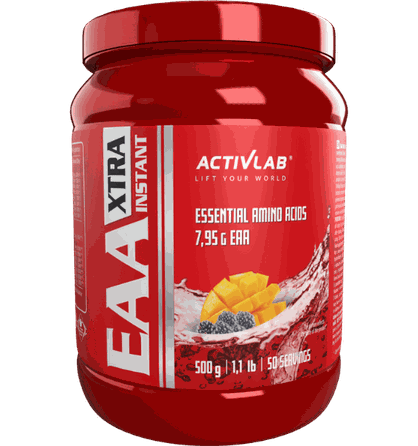 Activlab EAA Xtra Instant 500g. Aminorūgščių milteliai su saldikliais. Grynasis kiekis: 500g. Maistinė vertė 1 porcijoje (10 g) 2 porcijose(20 g) L-Leucinas 1,95 g (50%*) 3,9 g (100%*) L-Izoleucinas 1,0 g (50%*) 2,0 g (100%*) L-Valinas 1,3 g (50%*) 2,6 g (100%*) L-Lizinas 1,5 g (50%*) 3,0 g (100%*) L-fenilalaninas 0,75 g (50%*) 1,5 g (100%*) L-Treoninas 0,75 g (50%*) 1,5 g (100%*) L-Metioninas 0,5 g (50%*) 1,0 g (100%*) L-Triptofanas 0,2 g (50%*) 0,4 g (100%*) Vitaminas B1 0,55 mg (50%**) 1,1 mg (100%**) Vitaminas B2 0,7 mg (50%**) 1,4 mg (100%**) Niacinas (B3) 8 mg (50%**) 16 mg (100%**) Pantoteno rūgštis (B5) 3 mg (50%**) 6 mg (100%**) Vitaminas B6 0,7 mg (50%**) 1,4 mg (100%**) Biotinas (B7) 25 mg (50%**) 50 mg (100%**) Folio rūgštis (B9) 100 mg (50%**) 200 mg (100%**) Vitaminas B12 1,25 mg (50%**) 2,5 mg (100%**) *referencinės maistinės vertės Sudedamosios dalys: Watermelon, Raspberry Strawberry skoniai: L-leucinas, L-lizino hidrochloridas, rūgštingumą reguliuojanti medžiaga citrinų rūgštis, L-valinas, L-izoleucinas, fenilalaninas, L-treoninas, L-metioninas, L-triptofanas, kvapiosios medžiagos, saldikliai: Acesulfamas K ir sukralozė, vitaminai (nikotino rūgšties amidas, kalcio D-pantotenatas, piridoksino hidrochloridas, riboflavinas, tiamino mononitratas, pteroilmonoglutamo rūgštis, D-biotinas, cianokobalaminas), dažikliai: raudonasis košenilis - gali turėti neigiamą poveikį vaikų aktyvumui ir dėmesiui. Mango Blackberry skonis: L-leucinas, L-lizino hidrochloridas, rūgštingumą reguliuojanti medžiaga citrinų rūgštis, L-valinas, L-izoleucinas, fenilalaninas, L-treoninas, L-metioninas, L-triptofanas, kvapiosios medžiagos, saldikliai: Acesulfamas K ir sukralozė, vitaminai (nikotino rūgšties amidas, kalcio D-pantotenatas, piridoksino hidrochloridas, riboflavinas, tiamino mononitratas, pteroilmonoglutamo rūgštis, D-biotinas, cianokobalaminas), dažikliai: raudonasis košenilis - gali turėti žalingą poveikį vaikų aktyvumui ir dėmesiui, karminas, briliantinis mėlynasis. Alergenai: Sudėtyje gali būti glitimo turinčių grūdų, sojos, pieno darinių. Įspėjimai: Nenaudokite, jei esate alergiškas bet kuriai iš produkto sudedamųjų dalių. Laikyti gerai uždarytą, sausoje, vaikams nepasiekiamoje vietoje, toliau nuo tiesioginių saulės spindulių. Negalima vartoti tiems, kurie turi sveikatos sutrikimų arba vartojate kokius kitus vaistus. Rekomenduojama vartoti ne jaunesniems kaip 18m. Nerekomenduojama vartoti vaikams ir nėščioms moterims, prieš pastojant arba kai žindote. Produktas neturėtų būti vartojami kaip maisto pakaitalas. Geriausias iki: datos, nurodytos ant pakuotės. Serija: žr. ant pakuotės. Gamintojas: Unipro Sp. z o.o., Targowisko 553, 32-015 Klaj. Lenkija Platintojas: MB „Biceps“. Kauno g. 30, parduotuvė "MrBiceps", Vilnius. www.MrBiceps.lt. Tel. : +37064621250