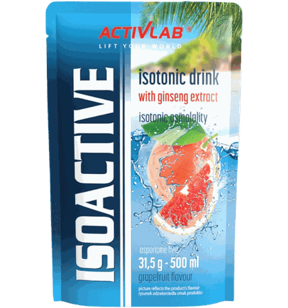 Activlab ISOACTIVE 31,5 g. Maisto produktas miltelias, su vitaminais, mineralais ir saldikliais. Grynasis kiekis: 31,5 g. Citrinų skonio: Maisinė vertė 100 g 31,5 g (1 porcija) %RMV* Energetinė vertė (citrinų, apelsinų, vyšnios, greipfruto skoniai) 1419,5 kJ / 334 kcal 447,1 kJ / 105,2 kcal Riebalai 0 g 0 g - kuriuose sočiųjų riebalų rūgščių 0 g 0 g Angliavandeniai 83,5 g 26,3 g - iš kurių cukraus 83,5 g 26,3 g Baltymai 0 g 0 g Druska 2,8 g 0,88 g Natris 1110 mg 350 mg Kalis 413 mg 130 mg (20%*) Chloridai 381 mg 120 mg (47%*) Kalcis 381 mg 120 mg (47%*) Magnis 190 mg 60 mg (50%*) Vitaminas B1 0,55 mg 173 μg (50%*) Vitaminas B2 0,7 mg 220 μg (50%*) Niacinas 8 mg 2,5 mg (50%*) Pantoteno rūgštis 3 mg 945 μg (50%*) Vitaminas B6 0,7 mg 220 μg (50%*) Biotinas 25 μg 7,9 μg (50%*) Folio rūgštis 100 μg 32 μg (50%*) Vitaminas B12 1,25 μg 0,39 μg (50%*) Žaliosios arbatos ekstraktas (citrinos skonis) 250 mg 79 mg įskaitant EGCG (epigalokatechino galatas) 112,5 mg 35 mg *Referencinė maistinė vertė Greipfruto skonio: Maisinė vertė 100 g 31,5 g (1 porcija) %RMV* Energetinė vertė (citrinų, apelsinų, vyšnios, greipfruto skoniai) 1419,5 kJ / 334 kcal 447,1 kJ / 105,2 kcal Riebalai 0 g 0 g - kuriuose sočiųjų riebalų rūgščių 0 g 0 g Angliavandeniai 83,5 g 26,3 g - iš kurių cukraus 83,5 g 26,3 g Baltymai 0 g 0 g Druska 2,8 g 0 ,88 g Natris 1110 mg 350 mg Kalis 413 mg 130 mg (20%*) Chloridai 381 mg 120 mg (47%*) Kalcis 381 mg 120 mg (47%*) Magnis 190 mg 60 mg (50%*) Vitaminas B1 0,55 mg 173 μg (50%*) Vitaminas B2 0,7 mg 220 μg (50%*) Niacinas 8 mg 2,5 mg (50%*) Pantoteno rūgštis 3 mg 945 μg (50%*) Vitaminas B6 0,7 mg 220 μg (50%*) Biotinas 25 μg 7,9 μg (50%*) Folio rūgštis 100 μg 32 μg (50%*) Vitaminas B12 1,25 μg 0,39 μg (50%*) Ženšenio ekstraktas 159 mg 50 mg įskaitant ginsenozidus 127 mg 40 mg *Referencinė maistinė vertė Arbūzų skonio: Maistinė vertė 100 g 31,5 g (1 porcija) %RMV* Energetinė vertė (arbūzų skonis) 1479 kJ / 348 kcal 465,8 kJ / 109,6 kcal Riebalai 0 g 0 g - kuriuose sočiųjų riebalų rūgščių 0 g 0 g Angliavandeniai 87,0 g 27,4 g - iš kurių cukraus 87,0 g 27,4 g Baltymai 0 g 0 g Druska 2,8 g 0,88 g Natris 1110 mg 350 mg Kalis 413 mg 130 mg (20%*) Chloridai 381 mg 120 mg (47%*) Kalcis 381 mg 120 mg (47%*) Magnis 190 mg 60 mg (50%*) Vitaminas B1 0,55 mg 173 μg (50%*) Vitaminas B2 0,7 mg 220 μg (50%*) Niacinas 8 mg 2,5 mg (50%*) Pantoteno rūgštis 3 mg 945 μg (50%*) Vitaminas B6 0,7 mg 220 μg (50%*) Biotinas 25 μg 7,9 μg (50%*) Folio rūgštis 100 μg 32 μg (50%*) Vitaminas B12 1,25 μg 0,39 μg (50%*) Maca (peruvinės pipirnės) šaknų ekstraktas 317 mg 100 mg įskaitant β-ekdizoną 1,59 mg 0,5 mg *Referencinė maistinė vertė Sudedamosios dalys: gliukozė, rūgštingumą reguliuojanti medžiaga - citrinų rūgštis, trinatrio citratas, kalcio fosfatas, kalio chloridas, magnio karbonatas, saldiklis E950, žaliosios arbatos lapų ekstraktas (Camelia sinensis) (citrinų skonio), ženšenio šaknų ekstraktas (Panax gingseng) (greipfruto skonis), kvapioji medžiaga, vitaminai (tiamino mononitratas, riboflavinas, nikotino rūgštis, kalcio pantotenatas, piridoksino hidrochloridas, D-biotinas, pteroilmonanoglutamo rūgštis, ), dažikliai: E104 (citrinų ir apelsinų skoniai), E124 (vyšnių ir greipfrutų skoniai), E110 (greipfrutų ir apelsinų skoniai). (kokoso), kokoso vandens koncentratas (43%), gliukozė, rūgštingumą reguliuojančios medžiagos: citrinų rūgštis ir natrio citratas, kvapiosios medžiagos, mineralai (ortofosforo rūgšties kalcio druskos, magnio karbonatas), saldiklis: acesulfamas K. Alergenai: gali būti grūdų, kurių sudėtyje yra glitimo, sojos, pieno darinių. Vartojimas: naudokite prieš, per (kas 15 minučių) ir po treniruotės. 31,5 g miltelių suplakti gertuvėje su 500 ml vandens. Įspėjimai: Nevartoti, jei esate alergiškas bet kuriai iš produkto sudedamųjų dalių. Netinka nėščioms ar krūtimi maitinančioms moterims. Produktas neturi būti vartojamas kaip maisto pakaitalas. Neviršyti nustatytos rekomenduojamos dozės. Laikyti sausoje, vėsioje, vaikams nepasiekiamoje vietoje, saugoti nuo tiesioginių saulės spindulių. Geriausias iki (termino pabaigos): geriausias vartoti iki termino, nurodyto ant pakuotės šono arba jos apačioje. Partija: žr. ant pakuotės. Gamintojas: UNIPRO Sp. z o. o., Targowisko 553, 32-015 Kłaj, Lenkija. Platintojas: Biceps, MB. Kauno g. 30, parduotuvė "MrBiceps", Vilnius. www.mrbiceps.lt. Tel. : +37064621250.