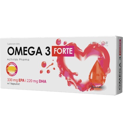 Activlab Omega Forte, 60 kaps. Maisto papildas kapsulėmis. Grynasis kiekis: 60 kapsulių. Maistinė vertė: 1 kapsulėje 2 kapsulėse 4 kapsulėse Eikozapentaeno rūgštis (EPR) 330 m 660 mg 1320 mg Dokozaheksaeno rūgštis (DHR) 220 mg 440 mg 880 mg Vitaminas E 12 mg (100 %*) 24 mg (200 %*) 48 mg (400 %*) *referencinė maistinė vertė Sudedamosios dalys: Žuvų taukai, apvalkalas (galvijų želatina, drėgmę išlaikanti medžiaga: glicerolis), DL-alfa-tokoferilacetatas. Alergenai: žuvis. Gali būti grūdų, kuriose yra glitimo, sojos, pieno darinių. Vartojimas: 1-2 kapsulės per dieną tiems, kurie rūpinasi tinkama širdies ir smegenų veikla bei geru regėjimu; 2 kapsulės du kartus per dieną tiems, kurie papildomai rūpinasi tinkamu trigliceridų kiekiu kraujyje. Neviršykite rekomenduojamos paros normos. Neviršykite 5 g EPA ir DHA paros normos kartu sudėjus. Įspėjimai: Nevartoti, jei esate alergiškas bet kuriai iš produkto sudedamųjų dalių. Netinka nėščioms ar krūtimi maitinančioms moterims. Maisto papildas neturi būti vartojamas kaip maisto pakaitalas. Neviršyti nustatytos rekomenduojamos dozės. Laikyti sausoje, vėsioje, vaikams nepasiekiamoje vietoje, saugoti nuo tiesioginių sauės spindulių. Neviršykite rekomenduojamos paros normos. Neviršykite 5 g EPA ir DHA paros normos kartu sudėjus. Geriausias iki (termino pabaigos): datos nurodytos ant pakuotės. Partija: žr. ant pakuotės. Gamintojas: UNIPRO Sp. z o. o., Targowisko 553, 32-015 Kłaj, Lenkija. Platintojas: Biceps, MB. Kauno g. 30, parduotuvė "MrBiceps", Vilnius. www.mrbiceps.lt. Tel. : +37064621250