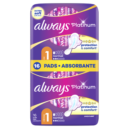 ALWAYS Platinum Normal (S1) – tai aukštos kokybės higieniniai įklotai, sukurti užtikrinti patikimą apsaugą lengvo ir vidutinio stiprumo menstruacijų metu. Dėl minkštos, odai švelnios tekstūros ir lankstaus dizaino jie prisitaiko prie kūno formų, suteikdami komfortą ir judėjimo laisvę visą dieną.