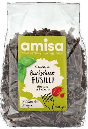 AMISA Bio Fusilli, be glitimo grikių makaronai, 500 g