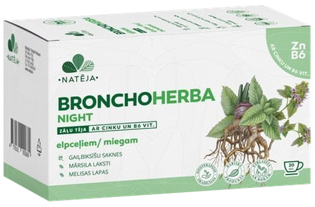 NATĒJA Bronchoherba Night arbatos maišeliai, 20 vnt.