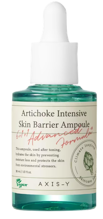 AXIS-Y Artichoke Intensive Skin Barrier Ampoule – tai drėkinamoji ir raminamoji ampulė su artišoko ir alavijo ekstraktu. Ampulė padeda sumažinti uždegimą, paraudimą ir sudirgimą, o dėl savo gydomojo ir priešuždegiminio poveikio veiksmingai kovoja su bėrimais.