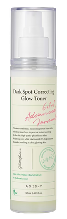 AXIS-Y Dark Spot Correcting Glow Toner – odos toną subalansuojantis ir drėkinantis veido tonikas–migla, kuri mažina paraudimą ir hiperpigmentaciją, paspartina uždegimų gijimą ir sumažina porų matomumą. Lengvas ir daugiafunkcis purškiklis tinka naudoti iš karto po prausimo arba dienos metu papildomam drėkinimui.
