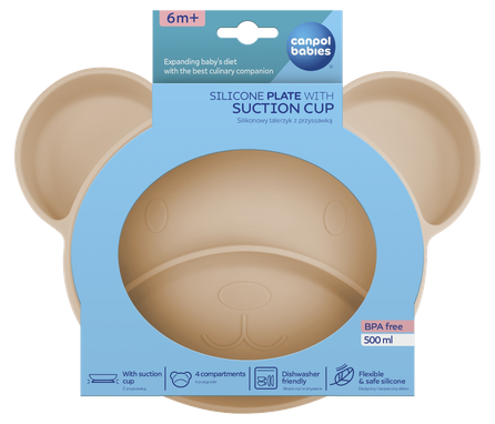CANPOL BABIES rusva, meškučio formos silikoninė lėkštė, 1 vnt.