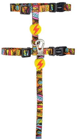 Prie diržų nugaros pritvirtintas D-žiedas, prie kurio galite lengvai pritvirtinti komplekte esantį pavadėlį. Pavadėlis taip pat pagamintas iš patvarios poliesterio medžiagos, o jo rankena pagaminta iš minkšto neopreno, kad būtų patogi laikyti.