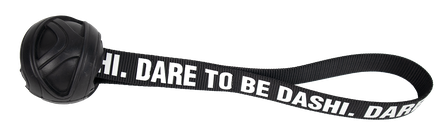 Juodas kamuolys pagamintas iš netoksinės gumos su patvariu poliesterio dirželiu, kad būtų lengva mesti ir džiaugtis žaidimu!