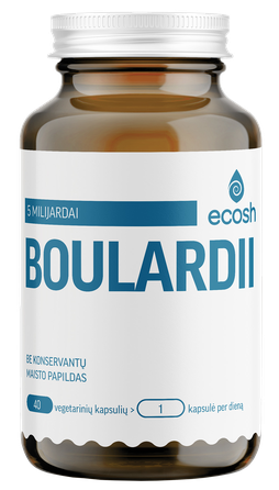 Vienoje kapsulėje – 5 milijardai Saccharomyces cerevisiae boulardii.