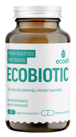 ECOSH Ecobiotic – tai itin aukštos koncentracijos maisto papildas, kurio vienoje kapsulėje suderinta net 12 skirtingų rūšių ir 20 milijardų gyvybingų pieno rūgšties bakterijų.