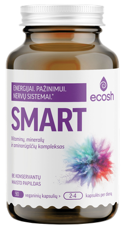 ECOSH maisto papildo Smart sudėtyje esantis PureWay-C® yra vitamino C kompleksas su natūraliomis augalinėmis riebalų rūgštimis ir citrusinių vaisių bioflavonoidais. Sudėtyje taip pat yra magnio, cinko, aminorūgščių: L-taurino, L-teanino ir L-arginino, rausvųjų rodiolių ekstrakto, vitaminų B6, B12 ir folio rūgšties.
