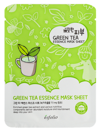 ESFOLIO Pure Skin Green Tea Essence lakštinė veido kaukė, 1 vnt.