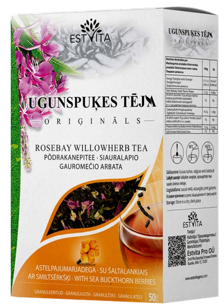 Naudojant senovines granuliacijos, fermentacijos ir džiovinimo technologijas, produkte išsaugojamos unikalios augalo savybės ir išskirtinis aitrus skonisfermentuoti siauralapių gauromečių lapai Siauralapis gaurometis arbata – tradicinis arbatos gėrimas.Dėl fermentacijos proceso Siauralapis gaurometis arbata pagerina savo savybes užplikymo metu.Šaltalankio uogos suteikia arbatiniam gėrimui unikalų skonių derinį: švelnų rūgštumą, malonų vaisių saldumą ir lengvą kartumą.