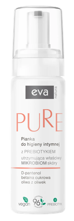 <p>EVA NATURA putos su prebiotikais sukurtos taip, kad padėtų palaikyti natūralią intymios zonos mikrobiotos pusiausvyrą. </p><ul><li>Prebiotikai — palaiko natūralią mikroflorą ir odos apsauginį barjerą</li><li>Švelnūs valikliai — valo nepažeisdami jautrios odos </li><li>Palaiko fiziologinį pH </li><li>Ramina ir drėkina </li><li>Tinka kasdieniam naudojimui </li><li>Dermatologiškai patikrinta formulė </li><li>Lengvos putos maloniai pasiskirsto, lengvai nusiplauna ir nepalieka sausumo pojūčio.</li></ul>