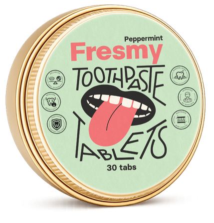 Fresmy dantų pastos tabletėse yra hidroksiapatito (HAp), netoksiškos fluoro alternatyvos, kuri natūraliai atkuria dantų emalį, ir postbiotikų, padedančių palaikyti subalansuotą pH lygį burnoje bei sukurti gerą terpę naudingosioms bakterijoms.