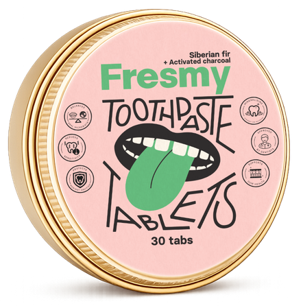 Fresmy dantų pastos tabletėse yra hidroksiapatito (HAp), netoksiškos fluoro alternatyvos, kuri natūraliai atkuria dantų emalį, ir postbiotikų, padedančių palaikyti subalansuotą pH lygį burnoje bei sukurti gerą terpę naudingosioms bakterijoms.