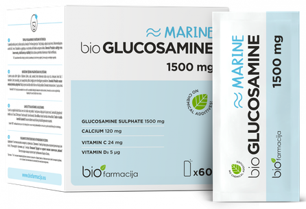 BIOFARMACIJA Bio Glucosamine Marine 1500 mg milteliai, 60 vnt.