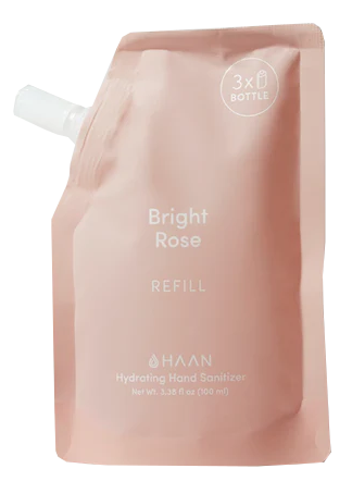 HAAN rankų valiklio papildymas Bright Rose – 100ml papildymo maišelis, skirtas HAAN Hand Cleanser Bright Rose 30ml buteliukui.