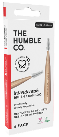 HUMBLE Size 2, Red tarpdančių šepetėlis, 6 vnt.
