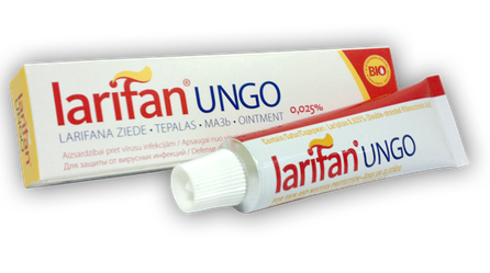 Larifan UNGO – tai odos ir gleivinių priežiūros priemonė. Sudėtyje yra patentuotas natūralus komponentas dvigrandė RNR (dsRNA) Larifan, kuris suteikia tepalui papildomą vertę. dsRNA Larifan padidina vietinį organizmo atsparumą nepageidaujamiems aplinkos veiksniams, įskaitant virusus.