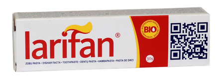 Be įprastų dantų pastos savybių – apnašų mažinimo, dantų balinimo ir apsaugos nuo ėduonies – dsRNR Larifan taip pat padeda apsaugoti burnos gleivinę nuo įvairių žalingų aplinkos veiksnių, ypač nuo virusų ir mikrobų patekimo bei dauginimosi burnoje.