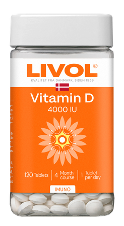 LIVOL Vitaminas D 4000 TV tabletėmis – aukštos kokybės produktas, sukurtas Danijos ekspertų. 1 tabletė per dieną – 4 mėnesių kursas. Be glitimo. Imunitetui. Vitaminas D prisideda prie normalios imuninės sistemos veiklos.