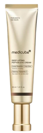 Medicube Deep Lifting Peptide Eye Cream intensyviai drėkina jautrią paakių odą ir padeda spręsti suglebusios odos, paburkimo bei „varnų kojelių“ problemas. Didelės koncentracijos peptidais praturtintas maitinamasis paakių kremas padeda kovoti su senėjimo požymiais – smulkiomis linijomis ir raukšlėmis – intensyviai stangrindamas odą ir gerindamas elastingumą. Kartu su septynių rūšių hialurono rūgštimi jis padeda išlaikyti ir prailginti drėgmės lygį odoje.