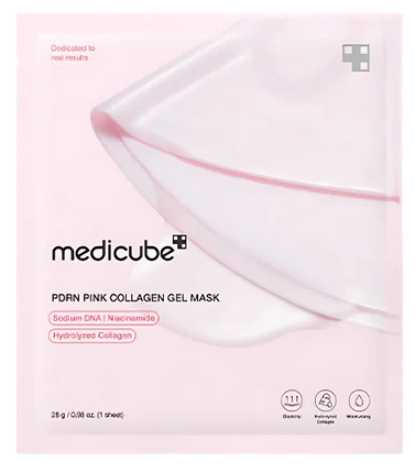 Medicube PDRN Pink Collagen Gel Mask praturtinta lašišų PDRN ir mažos molekulinės masės hidrolizuotu kolagenu, kad vienu naudojimu pagerintų odos elastingumą. Unikali įsisavinimo technologija leidžia kaukei „prarasti“ 15 g savo svorio, taip intensyviai perduodant drėgmę tiesiai į odą. Sukurta stiprinti odos barjerą, giliai drėkinti ir gerinti elastingumą, ši kaukė suteikia 48 valandų elastingumo „boost“.