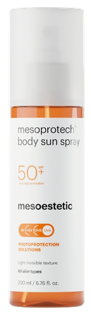 Kūno purškalas (SPF 50+), labai aukšto lygio fotoapsauga. Dermatologiškai patikrintas. Atsparus vandeniui. Fizinių, cheminių ir biologinių filtrų derinys. Vitaminas E užtikrina antioksidacinį ir apsauginį veikimą. Lengvai purškiamas, nematomas sluoksnis. Suteikia elastingumo ir apsaugo nuo dehidratacijos.