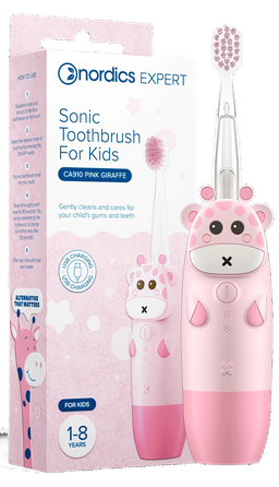 Švelniai valo ir rūpinasi jūsų vaiko dantimis ir dantenomis. Skirta 1-8 metų vaikams. Pakuotėje yra: elektrinis dantų šepetėlis vaikams „Nordics“, šepetėlio galvutė, USB kroviklis.