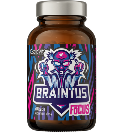 OstroVit Braintus Focus maisto papildas kapsulėmis. Sudėtyje yra kofeino (55 mg/3 kap.). Nerekomenduojama vaikams ir nėščioms moterims. Grynasis kiekis – 42 g. (90 kapsulių). Maistinė vertė: 1 porcijoje (3 kapsulėse) RMV%* Guaranos sėklų ekstraktas 250 mg - - iš kurio 22% kofeino 55 mg - L-tirozinas 200 mg - L-teaninas 200 mg - Mėlynžiedės taškuonės ekstraktas (Bacopa monnieri) (50% bakozidai) 150 mg - Ašvaganda šaknies ekstraktas 135 mg - Rausvosios rodiolės ekstraktas (1% salidrozidų) 100 mg - Cholino bitartratas 100 mg - Ženšenio šaknies ekstraktas (20% ginsenozidai) 100 mg - Vitaminas B6 18 mg 1268% *RMV% - referencinė maistinė vertė Sudedamosios dalys: kapsulės apvalkalas (užpildas: hidroksipropilmetilceliuliozė), guaranos sėklų ekstraktas (22% kofeino - 55 mg), L-tirozinas, Mėlynžiedės taškuonės ekstraktas (Bacopa monnieri) (50% bakozidų), ašvaganda šaknies ekstraktas (7,2% vitanolidų, 1% alkaloidų ir 0,25% vitaferino A), Rausvosios rodiolės ekstraktas (1% salidrosidų), cholino bitartratas, ženšenio šaknų ekstraktas (20% ginsenosidų), vitaminas B6 (piridoksin-5′— fosfatas). Įspėjimai: Nenaudokite, jei esate alergiškas bet kuriam iš produkto sudedamųjų dalių. Laikyti gerai uždarytą, sausoje, vaikams nepasiekiamoje vietoje, toliau nuo tiesioginių saulės spindulių. Negalima vartoti tiems, kurie turi sveikatos sutrikimų. Rekomenduojama vartoti ne jaunesniems kaip 18m. Draudžiama vartoti vaikams ir nėščioms moterims, prieš pastojant arba kai žindote. Maisto papildas neturėtų būti vartojami kaip maisto pakaitalas. Geriausias iki (termino pabaigos): datos nurodytos ant pakuotės. Partija: žr. ant pakuotės. Gamintojas: Ostrovit Spolka z o.o., ul. Sitarska 16, 18-300 Zambrów, Lenkija. Platintojas: MB Biceps. Kauno g. 30, parduotuvė "Ponas Bicepsas", Vilnius. www.ponasbicepsas.lt. Tel. : +37064621250.