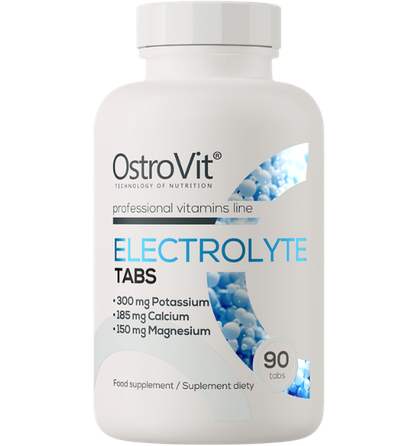 OstroVit Electrolyte 90 tab. Maisto papildas tabletėmis. Grynasis kiekis: 103 g (90 tablečių - 30 porcijų) Porcija: 3 tabletės. Maistinė vertė: 3 tabletėse Kalis 300 mg (15%*) Kalcis 185 mg (23%*) Magnis 150 mg (40%*) Natris 208 mg Chloridai 321 mg (40%*) *referencinė maistinė vertė Sudedamosios dalys: Kalio citratas (kalis), užpildas: mikrokristalinė celiuliozė; magnio karbonatas (magnis), natrio chloridas (natris, chloras), kalcio karbonatas (kalcis), krakmolas, lipnumą reguliuojanti medžiaga: silicio dioksidas. Alergenai: gali būti pieno (įskaitant laktozę), sojų pupelių, žemės riešutų, kitų riešutų, sezamo sėklų, glitimo turinčių grūdų, kiaušinių, vėžiagyvių, žuvies. Vartojimas: Vartokite po 1 porciją (3 tabletes) per dieną. Įspėjimai: Nenaudokite, jei esate alergiškas bet kuriam iš produkto sudedamųjų dalių. Laikyti gerai uždarytą, sausoje, vaikams nepasiekiamoje vietoje, toliau nuo tiesioginių saulės spindulių. Negalima vartoti tiems, kurie turi sveikatos sutrikimų. Rekomenduojama vartoti ne jaunesniems kaip 18m. Draudžiama vartoti vaikams ir nėščioms moterims, prieš pastojant arba kai žindote. Maisto papildas neturėtų būti vartojami kaip maisto pakaitalas. Geriausias iki (termino pabaigos): datos nurodytos ant pakuotės. Partija: žr. ant pakuotės. Gamintojas: Ostrovit Spolka z o.o., ul. Sitarska 16, 18-300 Zambrów, Lenkija. Platintojas: MB Biceps. Kauno g. 30, parduotuvė "MrBiceps.lt", Vilnius. www.mrbiceps.lt. Tel. : +37064621250.