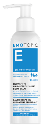 Drėkinamasis balzamas sausai ir į atopinį dermatitą linkusiai odai.