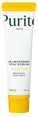 Purito Seoul Sea Buckthorn Vital 70 Cream yra koncentruotas vitaminų kremas, sukurtas su 70% šaltalankių vaisių ekstraktu, kuris skaistina ir subalansuoja odą. Šaltalankių vaisių ekstrakte yra iki 2000 mg vitamino C, kuris padeda šviesinti randelius ir užsispyrusią pigmentaciją, kad odos tonas būtų tolygesnis. Jame yra įvairių vitaminų, kurie subalansuoja odos toną ir suteikia jai gaivią bei sveiką išvaizdą. Šis sodrus kremas taip pat papildytas 8 išskirtiniais vitaminais, kurie padeda maitinti, drėkinti ir apsaugoti odą. Jis pasižymi gelinės tekstūros konsistencija ir dideliu būtinų drėkinamųjų ingredientų kiekiu, kuris suteikia odai pakankamą ir ilgalaikį drėkinimą.
