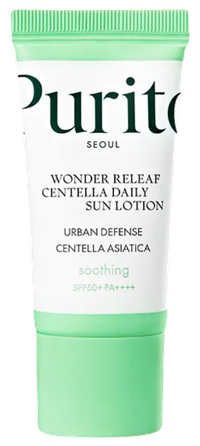 PURITO Wonder Releaf Centella Daily Sun SPF50+, palaikantis odos drėkinimą apsauginis kremas nuo saulės, 15 ml