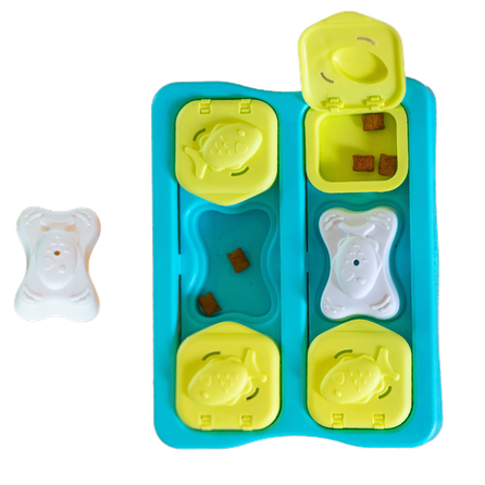 Naudokite jį be kaulų, kad žaisti būtų lengviau, arba padidinkite sudėtingumą, įdedant skanėstus tik į kelis skyrius, kad žaidimas būtų intensyvesnis ir problemų sprendimo procesas – įdomesnis.