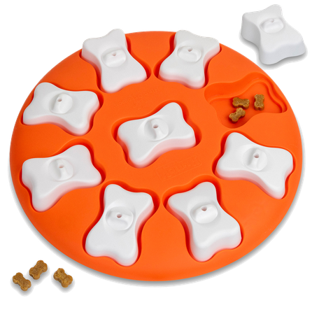 Nina Ottosson galvosūkis šunims, kuris suteikia protinį ir fizinį krūvį bei padeda sumažinti stresą ir nuobodulį. Tinka visų veislių šunims ir šuniukams. Sunkumo lygis 1: lengvas.