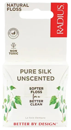 „Radius“ natūralaus šilko tarpdančių siūlas. Labai plonas ir stiprus, suverptas tikrų šilkaverpių, padengtas augaliniu vašku. Tinka siauriems tarpdančiams ir jautrioms dantenoms. Be glitimo, konservantų, dirbtinių saldiklių ir dažiklių, GMO, ftalatų, parabenų ir kitų kenksmingų priedų.