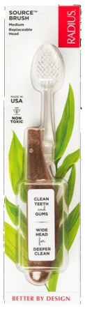 Dantų šepetėlis „Radius Source“ vidutinio kietumo šereliais yra plačia galvute ir patogiai valdoma rankenėle – užtikrina ypatingą komfortą ir švarą. Be BPA, latekso ir pftalatų. Tinka veganams.