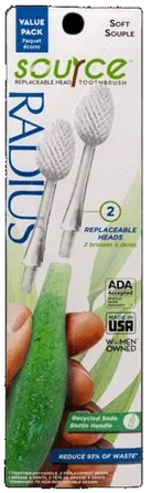 Dantų šepetėlis „Radius Source Soft“ minkštais šereliais rinkinyje su dar viena papildoma galvute. Ekonomiškas pasirinkimas.