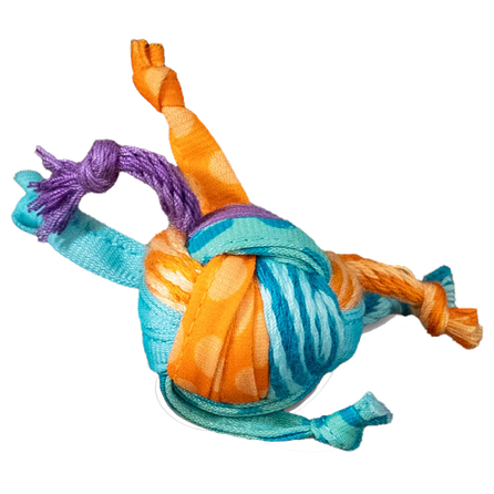 „Catnip Tons of Tails“ žaislas su katžolės užpildytu kamuoliuku tinka katėms, kurios mėgsta gaudyti, mesti ir nešti žaislus burnoje. Šis spalvingas ir interaktyvus dantų žaislas pagamintas iš tvirtos virvės, juostelės ir medvilnės juostelių, apvyniojusių katės mėta užpildytą vidurį.