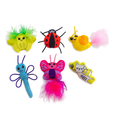 „Catstages Cute As A Bug“ – tai šešių pliušinių vabzdžių žaislų rinkinys katėms, sukurtas siekiant stimuliuoti jūsų katės žaidimo instinktus ir suteikti valandų valandas pramogų.